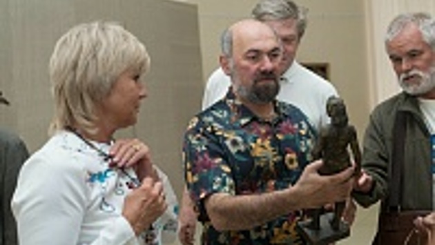 В Клину, в выставочном зале имени Ю.В. Карапаева, открылась персональная выставка заслуженного художника РФ Романа Фашаяна, приуроченная к его юбилею. … И в безоблачные 1960-е, спустя два десятилетия, война возвращалась, напоминая о себе сохраненными в семьях повестками. Возвращалась, напоминая о себе фронтовиками, живущими рядом или в соседней квартире. Роман, бакинский мальчишка, грезивший о том, чтобы стать художником, словно рокот моря в морской раковине, слышал раскаты залпов Великой Отечественной в многозначительном и красноречивом молчании своего деда, дошедшего до Берлина и упорно не желавшего рассказывать внуку о пережитом за те четыре страшных года. Только слезы текли по морщинистым щекам. А еще – в интонации песен соседа-инвалида, дяди Володи, собиравшего в их уютном дворике в местечке, что в народе звалось «Хутором», и стар, и млад. Дядя Володя вернулся с войны с орденом Красной Звезды, тремя медалями «За отвагу» и трофейной гармонью. В боях при освобождении Варшавы лишился ноги. И все же, несмотря на рану, которая при его попытках ходить на протезе всякий раз открывалась и тогда он криком кричал от боли по несколько дней, а когда рана затягивалась, переходил на опостылевшие костыли, сердце его не ожесточилось. Закурив любимый «Казбек», он рассказывал детворе фронтовые истории, стараясь вспоминать что-то смешное, ведь на войне, случалось, люди действительно смеялись чьей-то незамысловатой шутке. При этом он избегал разговоров о тех ужасах, что довелось пережить ему и таким же, как он, бойцам Красной армии, отстоявшим Родину, стараясь не пугать дворовую ребятню кровавыми подробностями. Таким он и остался в памяти Романа – настоящим русским, советским солдатом, наследником великой славы героев государства Российского. И уже тогда, в детстве, ощущая в себе тягу к творчеству, Роман дал себе слово воплотить героев в металле. Именно в металле, ибо ничто иное: ни живопись, ни графика, как он прежде считал, не способны воздать должное тем, кто не жалел своей жизни, чтобы избавить его и миллионы других мальчишек и девчонок нашей Родины, от коричневой чумы. … Прошло много лет. Бакинский мальчуган стал признанным скульптором, чьи произведения хранятся в различных частных коллекциях по всему миру. А вот эта тема его не отпускала. Он быть может, в еще большей мере, чем раньше, ощущал себя в неоплатном долгу перед ветеранами той далекой и ужасной войны. Ощущал потребность вернуть то время великих подвигов этих людей их потомкам, дабы они вновь ощутили высочайшую стоимость поступков своих отцов и дедов. И вот, два года назад он, наконец, увидел, какой должна быть скульптура, посвященная дяде Володе, многим тысячам таких же русских солдат, чьи судьбы были сломаны войной, но освящены чувством честно, по-мужски, исполненного долга. Два года назад он отлил в бронзе фигуру вернувшегося с полей Великой Отечественной воина на костылях и с гармонью за спиной, назвав свою работу: «Ком в горле». Этот памятник, возле которого посетители подолгу задерживаются, и предваряет экспозицию, главной темой которой, конечно же, является патриотизм. Рядом бронзовая скульптура другого человека, прошедшего войну, но не утратившего любовь к людям – Юрия Владимировича Никулина. Великий клоун в привычных его цирковому образу кургузом пиджачке и коротковатых брюк