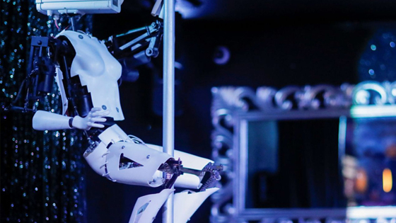 В одном из ночных клубов Франции вместо настоящих стриптизёрш «наняли» роботов с камерами вместо голов. Похоже, наступает эпоха киберпанка. Заменять ими людей, правда, никто не планирует. Внедрение механических танцовщиц — просто способ отметить пятилетний юбилей клуба SC-Club в Нанте. Роботов-танцоров разработал британский художник. Он взял антропоморфных роботов, наложил на них сверху вырезанные из манекенов части тела, обул в туфли на высоких каблуках и приделал вместо голов камеры видеонаблюдения. Так художник хотел сделать акцент на проблеме вуайеризма и того, как он соотносится с новыми технологиями. Журналисты также спросили у танцовщиц в клубе, беспокоятся ли они, что когда-нибудь в будущем роботы и правда их заменят. Девушки заявили, что ожидать этого точно не стоит, ведь они занимаются творчеством. А на это роботы не способны.