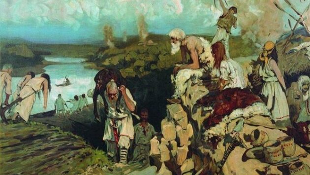 Название «славяне» в письменных источниках появилось примерно в середине I тысячелетия н.э. Оно встречается у жившего в V веке историка Прокопия Кесарийского, в византийском военном трактате «Стратегикон» императора Маврикия (VI в.) и в трудах скифского автора готского происхождения Иордана (Иорданиса). Последний писал в работе «О происхождении и деяниях гетов», что славяне проживают «от города Новиетуна и Мурсианского озера до Данастра и на север до Висклы; а вместо городов имеют болота и леса». Греческий вариант написания слова "славянин" - σκλαβηνός (склавенос) - распространился по Европе, претерпев незначительные трансформации, и образовав немецкое sklave, итальянское schiavo, французское esclave и английское slave. В праславянском языке это слово писалось как slověninъ или slověne (словенин или словене), в «Повести временных лет» - как словѣне. Происхождение названия до сих пор скрыто во тьме веков, что не мешает ученым всех мастей: историкам, лингвистам и даже писателям выдвигать самые разные теории. Название славянам дал князь Славен Исторический факт, что в VI веке восточные славяне насчитывали около двухсот племен: кривичи, вятичи, поляне, древляне, тиверцы, уличи, русь и т.д. Однако племя, проживающее в Новгороде, так и назвалось — словене. Автор Иоакимовской летописи из Новгорода – монах Нестор - прямо говорил, что именование сего племени пошло от имени князя, правившего им. По его утверждению, в древности жили два князя – братья, старшего звали Славен, а младшего Скиф. Князья эти всю жизнь вели войны, покорили множество земель на Черноморском побережье и на реке Дунай. От старшего брата и пошло название славян. Правда, от себя автор добавляет, что он «не добре сведем бе, что ся деяло у нас, славен, во Новеграде...» Эту версию поддерживает специалист по македонскому языку профессор Гарвардского университета Горас Дж. Лант, который указывает, что слова "словѣне", "словѧне" появляются в письменных источниках лишь в XIV веке, и считает, что ранее существовало название slověnji, означавшее «племя Словена», а само имя Словен (Словѣнъ) имеет праславянский корень slow- с вполне современным значением — «славный» или «овеянный славой». Косвенно это могут подтверждать княжеские имена, имеющие тот же корень: Гореслав, Святослав, Всеслав, Изяслав, Мстислав и т.д. Гипотезу о происхождении названия славян от слова «слава» критиковал советский славист Александр Мыльников, который подчеркивал, что во всех славянских языках корень слов, называвших славянский народ, содержал всегда гласную -о- (словяне, словене), и, следовательно, возникновение в корне -а- было вызвано влиянием греческого языка либо латыни, а значит, гипотеза неверна. Словене означает «народ» Советский славист Самуил Бронштейн считал, что название «славяне» происходит от индоевропейского slau̯os (народ) и сравнимо с греческим λᾱός. В этом с ним согласен авторитетный финский ученый-славист Юлиус Миккола. Славяне жили на реке Славе Автор-составитель «Этимологического словаря русского языка» Макс Фермер полагает, что название «славяне» было составлено по аналогии с названием "древляне" или "поляне": от некоего топонима – реки, горы или поселения, а затем распространилось на все остальные племена. Предполагается, что это могло быть название Днепра, который в старину звали Словутичем, реки Слуя, сербской рек