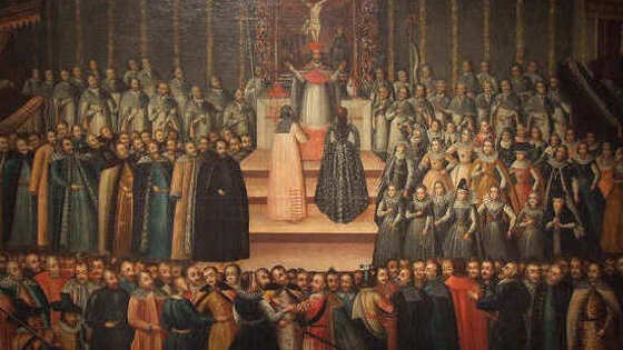 Обручение по доверенности Марины Мнишек и Лжедмитрия I состоялось в Кракове 414 лет назад, 22 ноября 1605 года. За четыре месяца до этого события Лжедмитрий I венчался в Успенском соборе Кремля на русское царство. Интересы жениха в Кракове представлял Афанасий Власьев. При помолвке дочери польского воеводы Юрия Мнишека Марине были обещаны не только драгоценности, но и Новгород с Псковом, а также предоставлено право исповедовать католицизм. Настоящую свадьбу с венчанием и провозглашением Марины царицей сыграли в Кремле 18 мая 1606 года. Её короновали под именем Марии Юрьевны, но это царствование продолжалось всего неделю. 17 мая Лжедмитрия низвергли и растерзали, неузнанная «царица» уцелела. До июля 1608 года авантюристка жила с родственниками в Ярославле, а после оказалась женой Лжедмитрия II — Тушинского вора, родила от него сына Ивана. Трёхлетнего мальчика затем повесили в Москве. Точная дата и причина смерти самой Марины неизвестна. Это произошло в 1614 или 1615 году. По легенде, она закончила свои дни в одной из башен Коломенского кремля, которую стали называть Маринкиной.