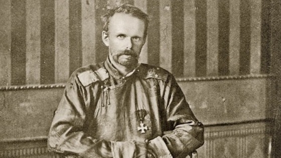 Барон Роман Федорович фон Унгерн-Штернберг был потомком древнего германского рыцарского рода. Несмотря на это, барон всеми фибрами души презирал западную цивилизацию и считал европейцев вырожденцами. Мечтой Унгерна было установление всемирного господства «желтой расы» и Гражданская война в России позволила ему начать воплощать свои безумные идеи в жизнь. В монгольских степях Романа Федоровича боготворили и считали реинкарнацией Чингисхана, а буддийские ламы воспевали его как божество войны. Унгерну удалось захватить власть в Монголии и собрать армию для завоевания Европы. Этот «крестовый поход» стал одним из наиболее ярких и абсурдных эпизодов, которыми богата история России в первые годы после Октябрьского переворота. Родился Роман Унгерн, настоящее имя которого было Николай-Роберт-Максимилиан фон Унгерн-Штернберг, в Австрии. Детство будущего повелителя монголов прошло в Прибалтике, где жило несколько поколений его предков, остзейских немцев. Когда мальчику было 6 лет, его родители развелись и отца ему заменил отчим, с которым у Романа были отличные отношения. В юные годы Унгерн не отличался примерным поведением и тягой к учебе, поэтому старания родителей дать ему хорошее военное образование закончилось провалом. Юношу отчислили из Морского кадетского корпуса в Санкт-Петербурге за своевольное поведение и морской офицер из него не получился. Как только грянула Русско-японская война, Унгерн записался вольноопределяющимся в пехотный полк и отправился на фронт. Но судьбе было угодно, чтобы потомок немецких рыцарей избежал японской шрапнели: воинское подразделение Унгерна не участвовало в боевых действиях, а находилось в резерве. Юный барон настоял, чтобы его перевели ближе к театру боевых действий и его просьба была удовлетворена. К огорчению Романа, пока происходил его перевод, война завершилась поражением Российской империи. Но в действующей армии Унгерн получил погоны ефрейтора и, главное, желание стать офицером. Уже без приключений остепенившийся Унгерн окончил Павловское пехотное училище и в чине хорунжего был зачислен в 1-й Аргунский полк Забайкальского казачьего войска. Именно с этого момента и начинается самое интересное в его насыщенной событиями жизни. Среди сослуживцев Роман Унгерн имел не слишком хорошую репутацию. Сослуживцы барона вспоминали о нем как о вспыльчивом, агрессивном человеке, к тому же злоупотребляющим алкоголем. Напившись, хорунжий становился обидчивым и неуправляемым, устраивая ссоры и отчаянные драки. Унгерн в мундире Нерчинского казачьего полка Во время одной из потасовок он получил саблей по голове, из-за чего всю оставшуюся жизнь мучился головными болями. Иван Кряжев, один из сослуживцев Унгерна по 1-му Аргунскому полку позднее вспоминал о нем так: Барон вел себя так отчужденно и с такими странностями, что офицерское общество хотело даже исключить его из своего состава… Унгерн жил совершенно наособицу, ни с кем не водился, всегда пребывал в одиночестве. А вдруг, ни с того ни с сего, в иную пору и ночью, соберет казаков и через город с гиканьем мчится с ними куда-то в степь – волков гонять, что ли. Толком не поймешь. Потом вернется, запрется у себя и сидит один, как сыч. Но, несмотря на неуживчивый характер и странности, Унгерна в полку уважали. Этого человека отличала настойчивость