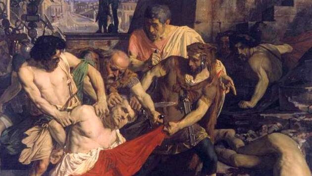 В Древнем Риме существовало несколько мест для публичных казней. Как правило, для свершения правосудия использовались ровные площадки, способные вместить солидное количество зрителей. Но из этого правила есть и исключение — это лестница Scalae Gemoniae, ведущая от Капитолийского холма к Римскому форуму. Лестница Scalae Gemoniae, или Гемониева лестница, была расположена в непосредственной близости от Мамертинской тюрьмы. Именно ее узники чаще всего заканчивали свои дни на ступенях страшной лестницы. Такая казнь считалась позорной и назначалась за самые отвратительные преступления. Но это не помешало римлянам расправиться на Scalae Gemoniae с несколькими сенаторами и даже одним императором. Считается, что Гемониева лестница была построена в самом начале I века нашей эры и, скорее всего, это произошло при императоре Августе. Но как место исполнения смертных приговоров ее начали использовать позже, при императоре Тиберии, имевшем немало политических соперников. Именно оппозиционные к Тиберию политики и стали первыми жертвами лестницы, ведущей вниз с Капитолийского холма. Вероятнее всего, именно на этом месте был казнен Люций Сеян, который планировал свержение императора. Как обычно это бывало в Риме, расправа над приговоренными происходила немедленно после оглашения приговора. Чаще всего осужденного сбрасывали с лестницы и несчастный катился по ее крутым каменным ступеням, сокрушая конечности и ребра. Если ему везло, то он сразу ломал шею и быстро умирал, но чаще всего падение лишь приводило лишь к травмам, а добивали жертву мечами, кинжалами или голыми руками. Иногда приговоренного сначала удушали, а затем его тело бросали по ступеням и это считалось хорошей смертью. Так и поступили с Люцием Сеянусом — его бездыханное тело, скатившееся по ступеням, внизу поджидала толпа. Труп заговорщика римляне разорвали в клочья и останки человека, некогда исполнявшего обязанности самого императора, несколько дней гнили на площадке под Scalae Gemoniae. Когда труп изменника обглодали собаки и расклевали птицы, тело сбросили в протекающий поблизости Тибр. Вид на Капитолийский холм, откуда начинали свой последний путь приговоренные В 37 году нашей эры Тиберия не стало и казни на Гемониевой лестнице стали редкостью. Одной из самых известных личностей Рима, казненной тут, стал император Вителлий. Он был выходцем из военачальников и стал третьим императором в злосчастный 69 год, названный историками «Годом четырех императоров». 16 апреля 69 года покончил жизнь самоубийством Отон и Вителлий занял его место. Но ему удалось продержаться у власти всего 8 месяцев, пока его войска не потерпели поражение от армии Веспасиана. Как только солдаты победителя вступили в Рим, Вителлия извлекли из уборной его дворца, где он прятался, и оттащили на лестницу. Смерть Авла Вителлия Здесь поверженного правителя ждали горожане, которые всего несколько часов назад называли его своим императором. Жители Рима, при молчаливом согласии солдат Веспасиана, избивали и унижали Вителлия, а затем забили его до смерти. Испуская дух, император произнес, обращаясь к Вечному городу: «И все же я был твоим Императором». Но Гемониева лестница служила не только для казней и скорых расправ. Здесь собирались, чтобы выразить свое возмущение горожане — стихийные и организованные митинги обычно сводились к 