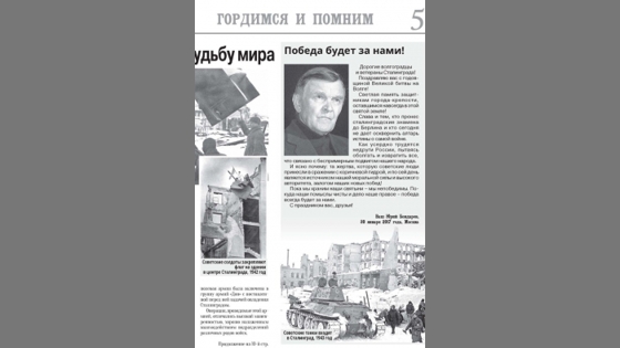 Последнее публичное выступление Юрия Бондарева адресовал волгоградцам