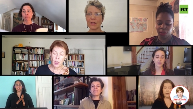 На российском международном телеканале RT показали сюжет, в котором американский хор на карантине поёт советскую песню «Три танкиста». Об этом стало известно интернет-порталу «ИКС ТВ». По словам самих вокалистов хора Шиллеровского института, они посвятили эту акцию 75-й годовщине встречи советских и американских солдат на Эльбе весной 1945 года, вскоре после которой Великая Отечественная война была окончена. музПесня была исполнена под аккомпанемент трубы, пианино. Некоторые участники прикрепили к своей одежде георгиевские ленточки. Как известно, песня «Три танкиста» написана в 1939 году и является неформальным гимном пограничных и танковых войск СССР и Российской Федерации. Впервые песня была исполнена Николаем Крючковым в кинофильме «Трактористы» вскоре после боёв на Халхин-Голе, позднее её исполняли многие известные исполнители и коллективы. Напомним, что на телеканале «Мир 24» показали как испанцы поют Цоя. Полная версия материала доступна в «ИКС ТВ».