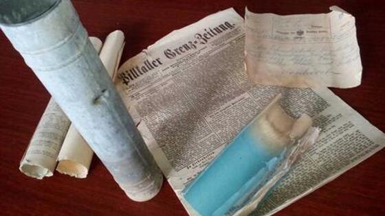 Письма предков, газеты и инопланетный язык — "Клопс" вспомнил, какие капсулы времени находили в Калининградской области в последние годы. 1. Газеты из Пилькаллена В 2019 капсулу времени обнаружили в Добровольске, когда сносили старинное здание. В капсуле нашлась в том числе телеграмма, отправленная в бывший Пилькаллен. Мужчина писал, что из-за инвалидности не сможет присутствовать при закладке дома. Сохранились страницы газеты от 26 апреля 1903 года. Находку передали в краеведческий музей Краснознаменска. 2. Помогли птицы В июле 2018-го птица столкнула со шпиля Кафедрального собора памятную капсулу — на крыше давно живут соколы. Это случилось, когда возле здания стояла группа туристов. Капсулу заложили в июле 1994 года, когда устанавливали шпиль. В ней сохранились газеты, монеты и банкноты 90-х годов. Находка передана в музей Иммануила Канта. 3. В пачке немецких газет В июле 2015 в Нестеровском районе нашли клад с посланием в будущее: пачку немецких газет 1928 года, монеты, банкноты и письмо о приходе нацистов к власти в Германии. Находку передали в местный музей. 4. На неизвестном языке Когда в Балтийске прокладывали газопровод, монтажник Евгений Яромчук нашёл на улице Ленина бутылку с письмом. На двух скрученных в трубочку тетрадных листах было послание не непонятном языке. Лингвисты решили, что это специальный шифр. Письмо передали в университет. 5. Привет от дембелей На стройке Нахимовского училища в Калининграде экскаваторщик нашёл чашу с запиской от дембелей 1976 года. В послании содержались имена ефрейторов из Краснодарского края и Ставропольского края. В 2019 году в основание строящегося онкоцентра в посёлке Родники заложили капсулу с посланием потомкам. Так же отметили начало возведения храма на ул. Ульяны Громовой в 2018-м.
