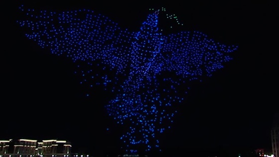 В точное назначенное время они появились в ночном небе и образовали живые картины - символы героического подвига советских воинов. Больше двух тысяч дронов взлетели в честь годовщины окончания Второй Мировой войны в Санкт-Петербурге. А вечернее небо над Северной столицей украсили орден «Победы», цифра «75» и голубь мира. Гигантские изображения рисовали с помощью квадркоптеров. Всего в небо отправилось ровно 2200 дронов. Произведены и собраны они вручную в Санкт-Петербурге. В точное назначенное время квадрокоптеры появились в ночном небе и образуют живые картины - символы героического подвига советских воинов. Фигуры из квадрокоптеров, плавно сменяющие друг друга, были видны даже из самых удаленных районов города. Кульминацией светового шоу стал момент, когда в небе над Невой дроны синхронно выстроились в цифру «75» в честь годовщины окончания Второй мировой войны. Красочные акции в память о Победе над фашизмом прошли по всей стране. В Хабаровске развернули масштабную видеопроекцию, рассказывающую о событиях Великой Отечественной. В Екатеринбурге в цвета муаровой ленты медали «За Победу над Японией» окрасилась арена Центрального стадиона. Световое шоу «Борьба за Победу» прошло и в Севастополе на фасаде Дворца детского творчества. Шоу беспилотников в Петербурге завершало эту серию памятных мероприятий. Из 2200 дронов не взлетали всего два. Но это не помешало установить новый мировой рекорд по количеству синхронно парящих в воздухе квадрокоптеров.