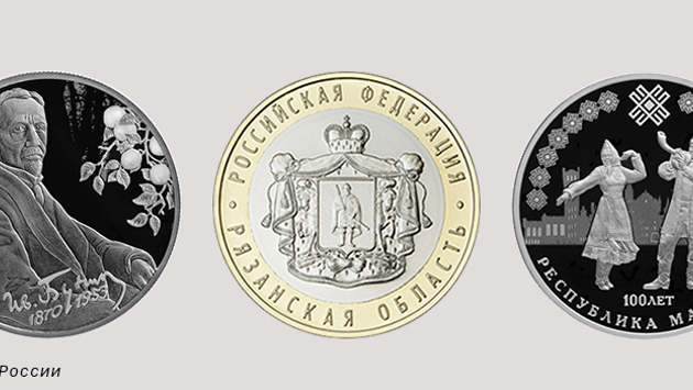 Банк России 7 сентября выпустит в обращение новые памятные монеты из драгоценного и недрагоценного металлов. Об этом сообщает в четверг, 3 сентября, пресс-служба регулятора. В обращение выпускаются три новые монеты: серебряная номиналом 2 рубля «Писатель И. А. Бунин, к 150-летию со дня рождения (22.10.1870)» в серии «Выдающиеся личности России»; серебряная номиналом 3 рубля «100-летие образования Республики Марий Эл»; монета из недрагоценного металла номиналом 10 рублей «Рязанская область» в серии «Российская Федерация». На монете, посвященной 150-летию со дня рождения Ивана Бунина (на оборотной стороне), размещен рельефный портрет писателя на фоне контурных изображений деревьев, выполненных в технике лазерного матирования. Справа от портрета рельефно изображена ветвь яблони, а внизу — факсимиле подписи писателя и годы его жизни (1870—1953). Тираж монеты — 3 тыс. штук. На монете к столетию Республики Марий Эл изображен музыкант в национальном костюме, играющий на марийской волынке, и женщина, танцующая марийский народный танец (оба изображения — рельефные), на фоне выполненной в технике лазерного матирования стилизованной панорамы городских строений. Верхняя часть монеты по окружности оформлена традиционным марийским узором. Внизу имеются надписи «Республика Марий Эл» и «100 лет». Тираж этой монеты также составит 3 тыс. экземпляров. Монета из недрагоценного металла, посвященная Рязанской области, — комбинированная: она состоит из светлого диска и внешнего кольца желтого оттенка. На оборотной стороне расположено рельефное изображение герба Рязанской области, на кольце по окружности имеются надписи «Российская Федерация» и «Рязанская область». Недрагоценных монет будет изготовлено 5 млн штук.