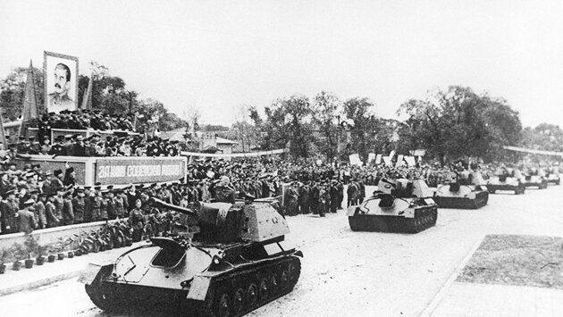 Подписание акта о капитуляции Японии состоялось 2 сентября на борту американского линкора "Миссури". 3 сентября в СССР объявили праздником победы над Японией и нерабочим днем. Чтобы поставить символическую точку в этой войне, советское командование решило провести парад Победы, уже четвертый на тот момент. Незадолго до этого состоялись исторический парад Победы на Красной площади в Москве и еще два менее известных широкой публике парада: 4 мая советские войска прошли по Берлину в ознаменовании взятия столицы бывшего Третьего рейха, а 7 сентября в Германии состоялся парад советских, английских, американских и французских войск в честь победы во Второй мировой войне. Парад в честь победы над Японией решили провести не на территории СССР, а в китайском городе Харбин. На его организацию главнокомандующий советскими войсками на Дальнем Востоке маршал Советского Союза Александр Васильевский дал 13 дней. За подготовку торжества отвечал военный комендант и начальник гарнизона Харбина генерал-полковник Афанасий Белобородов. Одной из первых проблем, которые ему пришлось решать, стало новое обмундирование для солдат. После тяжелых боев в горах и болотах солдатская форма пришла в плачевное состояние, не лучше людей выглядела и техника, побывавшая в сражениях. На помощь пришли китайские портные, которые распределили работу по множеству мелких мастерских. Уже через несколько дней советский военный гарнизон получил новую парадную форму. Технику для парада отремонтировали и заново покрасили. Очень быстро о будущем празднике узнал не только весь город, но и жители окрестных деревень. Коллективы предприятий и организаций Харбина помогли украсить улицы города флагами, праздничными транспарантами и даже электрической иллюминацией. Особым спросом в дни подготовки парада пользовалась красная ткань, которую, по воспоминаниям очевидцев, в Харбине было практически не найти. Советское командование решило проводить парад на Вокзальной площади Харбина. Незадолго до начала шествия саму площадь и прилегающие к ней улицы заполнили сотни тысяч горожан. 16 сентября 1945 года в 11 часов дня перед войсками появился Афанасий Белобородов, который объехал праздничный строй и поздравил с победой солдат и жителей города. Парад открыли колонны пехотинцев, связистов, саперов и минометчиков, следом за ними парадным маршем прошла мотопехота, артиллерия и танкисты. Особое впечатление на зрителей произвели легендарные гвардейские минометы "Катюша", слава о которых за время Великой Отечественной войны дошла и до Дальнего Востока. Китайцы очень тепло встречали советских воинов. Во время оккупации китайских территорий японские войска прославились особой жестокостью по отношению к местным жителям, поэтому солдат Красной армии они встречали как настоящих освободителей. Следом за войсками на Вокзальную площадь Харбина вышли колонны демонстрантов, в которых рядом с китайцами шли представители многочисленных национальных диаспор города. Большинство людей несли в руках красные флажки или цветы. Из семиста тысяч жителей Харбина непосредственное участие в параде приняли порядка трехсот тысяч человек, из-за чего людской поток двигался вдоль праздничной трибуны несколько часов. Вторая мировая война 1939-1945 годы. Население Харбина приветствует советских военн
