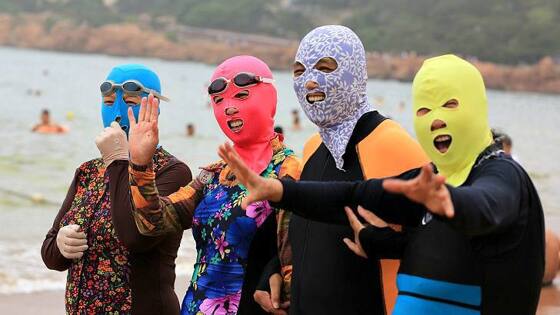 Китайцы очень боятся солнечного излучения, предпочитают светлую кожу и сходят с ума по солнцезащитным средствам. Неудивительно, что в жаркий сезон стало популярно закрывать все лицо тканью, чтобы ни один солнечный луч его не коснулся.