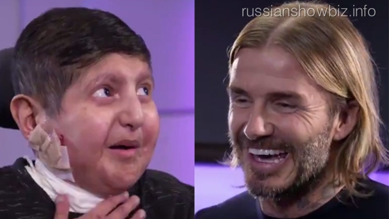 Дэвид поразил молодого обладателя премии «Гордость Британии», Моина Юниса, сообщив ему о победе и подарив приглашение на престижное мероприятие. В радующем сердце видео Мо болтает с Дэвидом по телефону. Затем бывший футболист делает вид, что связь пропала, и внезапно заходит в ту же комнату, где находится Мо. Глаза Юниса наполнились слезами, когда он увидел знаменитого отца четверых детей: «О, Господи! Я не знаю, что сказать, дружище!» Дэвид сообщил подростку: «Я так много слышал о тебе, Мо. Ты удивительный человек, который так много делает для других. Тебе пришлось и все приходится преодолевать много испытаний, но ты думаешь о других людях, о жизни. Я слышал истории от добровольца в детском хосписе, которые показались мне невероятными… Причина, по которой я сегодня здесь – сообщить тебе о победе в «Гордости Британии». Моин, получивший заслуженную награду за вклад в благотворительность, ответил: «Это удивительно. Я не могу поверить. Это лучший день во всей моей жизни. Подрастать и наблюдать за твоими успехами было замечательно. Правда, у меня не получается отрастить такие волосы, как у тебя». Позже, Мо пояснил свою реакцию: «Я был в такой растерянности, что увидел волосы Дэвида и начал разговор на эту тему».