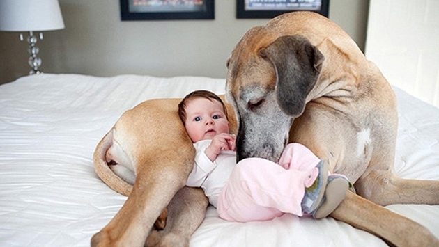 Четвероногая дружба: 17 самых милых фото малышей и огромных собак