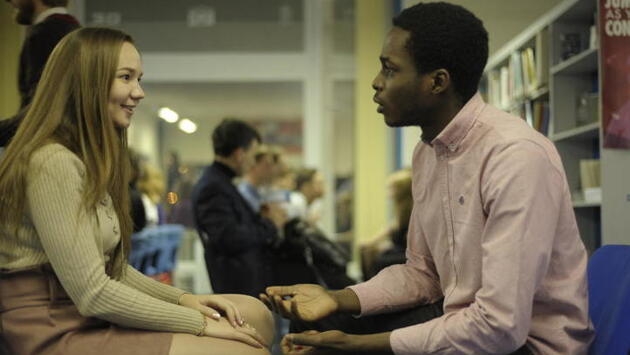 В среду, 14 февраля, в Библиотеке иностранной литературы состоялась интернациональная акция «Быстрое свидание». Искать свою судьбу отправилась корреспондент «Вечерки». — Привет! Как тебя зовут? — спрашиваю я собеседника на английском. — Сэм! Как у тебя дела? — отвечает он мне. По правилам этих свиданий на каждого потенциального кандидата отводится всего три минуты. Но и за такое короткое время можно узнать о человеке немало. Сэм любит Лондон. Игорь мечтает стать самым богатым человеком в мире. Саша наизусть знает все произведения Джеймса Джойса. Даже пытается начать их мне зачитывать! Слава богу, я сбежала ровно через три минуты. — Общение у нас идет на иностранном языке, — рассказывает куратор свиданий Екатерина Пустовалова. — Английский — самый популярный, на нем говорят около 180 участников. Многие общаются на испанском. У нас здесь сегодня больше 500 человек и семь языков! Казалось бы, идеальная возможность найти свою судьбу. Но за эти чертовы три минуты невозможно понять, твой ли это человек! А после пятого «свидания» вся информация в голове уже смешивается. — Я не верю в эффективность быстрых свиданий, — успела мне в перерыве между знакомствами сказать участница Наталия Кузнецова. — Это мой первый подобный опыт. Но даже если не удастся найти принца, то хоть попрактикуюсь в иностранном языке. У меня, кстати, не «выгорело». Но позитива и приглашений «узнать друг друга получше» мне вполне хватит!