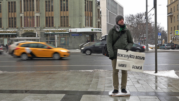 В арсенале Симона Пфеффеля есть с десяток разнообразных перформативных практик, сбивающих с толку, а порой и шокирующих людей, которые встречаются ему в публичных местах. Он работает с обществом ослабленных связей, где коммуникация затруднена настолько, что ассоциируется в первую очередь с профессиональной сферой деятельности. Расположившись на улице с плакатом (“Take me home”, “I will carry you!”), улегшись с блокнотом посреди многолюдной площади (“Handeln ist sterben lernen”) или привязав себя к велосипеду в надежде, что кто-нибудь затащит его в гору (“Moving mountains”), Пфеффель вовлекает проходящих мимо зевак в свои перформансы, провоцирует на разговор и в конце концов делегирует право руководить акцией зрителю. Художественный метод Пфеффеля всегда связан с чем-то неуловимым и не очень зрелищным, с самой тканью повседневности. Здесь, конечно, не обошлось без «эстетики взаимодействия». Но если, скажем, Рикрит Тиравания размещал передвижную кухню в стенах музея, подвергая повседневные практики институализации, то Пфеффель работает с обыденными явлениями, не пытаясь вырвать их из естественной среды. В этом смысле его перформансы более созвучны акциям чешского концептуалиста Иржи Кованды, который похожим образом шокировал прохожих на улицах Праги в 1970-е. В Москву Симон привез работу под названием «Возьми меня домой» — двухчастный перформанс, во время которого художник сначала стоит на улице с табличкой, призывающей прохожих пригласить его в гости, а после проводит вторую часть акции в гостиной у пригласившего. Как и большая часть его перформансов, «Возьми меня домой» обращается к социальным и поведенческим нормам. Пфеффель играет здесь с образом человека, стоящего на улице с плакатом, которого запросто можно принять за городского сумасшедшего или активиста, забывшего, во имя чего он выступает. Провоцируя смущение, страх, непонимание со стороны зрителя, он сокращает дистанцию между автором и наблюдателем. Перформанс в любой момент может выскользнуть из его рук и стать коллективным произведением. Симон Пфеффель. Courtesy автор Татьяна Сохарева: Расскажи о своих первых перформансах. Почему ты обратился именно к этой практике? Симон Пфеффель: В юности я интересовался граффити и часто рисовал на улицах, поэтому так или иначе взаимодействовал с общественным пространством. Во время учебы занимался живописью, а после — увлекся скульптурой. Однажды, когда я отправился путешествовать по Мексике, мне пришло в голову делать скульптуры, которые можно было бы быстро собрать и разобрать на новом месте. В какой-то момент я заметил, что мобильность произведения для меня важнее, чем, собственно, объект. Она давала мне возможность каждый раз, когда я брал скульптуру с собой, собирать из нее нечто новое. Я делал такие работы из стали, потому что это очень практичный материал, с ним не нужно чересчур бережно обращаться. В конце концов скульптура превратилась в конструкцию, поддерживающую меня во время перформансов. В тот момент для меня было важно, чтобы, помимо перформативного элемента, в работе оставалось место визуальному. Многие мои перформансы работали и как изображение тоже. Более того, только через картинку можно было понять, что происходит. Но, когда я заметил, что диалог и действие мне все же интереснее, я вовсе отказался от скульптуры. Она стала меня ограничи