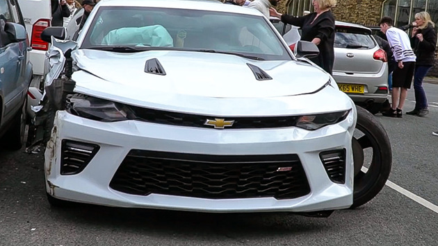 Наш сегодняшний герой приехал на крайне популярном в США Chevrolet Camaro и, наверное, отлично провел время. Но нельзя же просто взять и спокойно уехать с автошоу, верно? Водитель поддает газу и хочет красиво уйти в закат на белоснежном спорткаре, но в итоге "уходит" в несчастную Kia, которой не повезло казаться на пути у гонщика. Какую мораль из всего этого можно вывести? Да, в сущности, никакой. Кроме того, что лучше не красоваться на мощном авто, если ты не слишком хороший водитель.