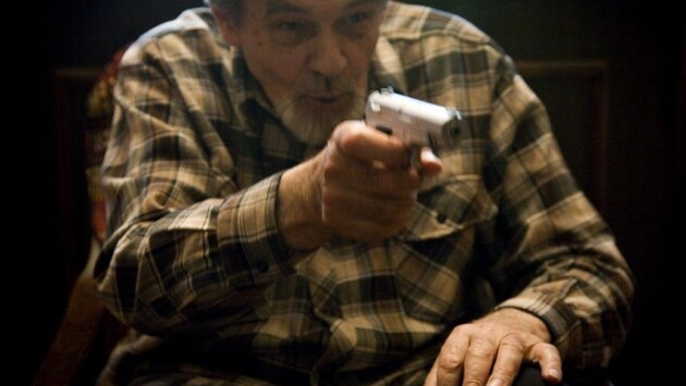 Дед в растерянности стоял и не мог понять, куда именно ему идти. Охранник повернул голову к посетителю, смерил взглядом и презрительно кивнул: — Вот ты чего встал, неужели не видно, вон окошки, там и плати. — Ты не серчай, сынок, я же думал что у вас тут порядок какой есть, а теперь понятно, что в любом окошке могу заплатить. Дед медленно пошел к ближайшему окошку. — С вас 355 рублей и 55 копеек, — сказала кассир. Дед достал видавший виды кошелек, долго в нем копался и после выложил купюры. Кассир отдала деду чек. — И что, сынок, вот так сидишь сиднем целый день, ты бы работу нашел лучше, — дед внимательно смотрел на охранника. Охранник повернулся к деду: — Ты что издеваешься, дед, это и есть работа. — Аааа, — протянул дед и продолжил внимательно смотреть на охранника. — Отец, вот скажи мне, тебе чего еще надо? — раздраженно спросил охранник. — Тебе по пунктам или можно все сразу? — спокойно ответил дед. — Не понял? — охранник повернулся и внимательно посмотрел на деда. — Ладно, дед, иди, — сказал он через секунду и опять уставился в монитор. — Ну, тогда слушай, двери заблокируй и жалюзи на окна опусти. — Непо… — охранник повернулся и прямо на уровне глаз увидел ствол пистолета. — Да ты чего, да я щас! — Ты, сынок, шибко не ерепенься, я с этой пукалки раньше с 40 метров в пятикопеечную монету попадал. Конечно сейчас годы не те, но да и расстояние между нами поди не сорок метров, уж я всажу тебе прямо между глаз и не промажу, — спокойно ответил дед. — Сынок, тебе часом по два раза повторять не нужно? Али плохо слышишь? Блокируй двери, жалюзи опусти. На лбу охранника проступили капельки пота. — Дед, ты это серьезно? — Нет, конечно нет, я понарошку тыкаю тебе в лоб пистолетом и прошу заблокировать двери, а так же сообщаю, что грабить я вас пришел. — Ты, сынок, только не нервничай, лишних движений не делай. Понимаешь, у меня патрон в стволе, с предохранителя снят, а руки у стариков сам знаешь, наполовину своей жизнью живут. Того и гляди, я тебе ненароком могу и поменять давление в черепной коробке, — сказал дед, спокойно глядя в глаза охраннику. Охранник протянул руку и нажал две кнопки на пульте. В зале банка послышался щелчок закрывающейся входной двери, и на окна начали опускаться стальные жалюзи. Дед, не отворачиваясь от охранника, сделал три шага назад и громко крикнул: — Внимание, я не причиню никому вреда, но это ограбление! В холле банка наступила абсолютная тишина. — Я хочу, чтобы все подняли руки вверх! — медленно произнес посетитель. В холле находилось человек десять клиентов. Две мамаши с детьми примерно лет пяти. Два парня не более двадцати лет с девушкой их возраста. Пара мужчин. Две женщины бальзаковского возраста и миловидная старушка. Одна из кассиров опустила руку и нажала тревожную кнопку. — Жми, жми, дочка, пусть собираются, — спокойно сказал дед. — А теперь, все выйдите в холл, — сказал посетитель. — Лень, ты чего это удумал, сбрендил окончательно на старости лет что ли? — миловидная старушка явна была знакома с грабителем. Все посетители и работники вышли в холл. — А ну, цыц, понимаешь тут, — серьезно сказал дед и потряс рукой с пистолетом. — Не, ну вы гляньте на него, грабитель, ой умора, — не унималась миловидная старушка. — Старик, ты чего, в своем уме? — сказал один из парней. — Отец, ты хоть понимаешь, что ты делаешь? — спросил мужчина в темной рубаш