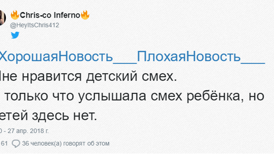Наверняка вы частенько слышали фразу: «У меня есть две новости: хорошая и плохая. С какой начать?». Выбираете сначала услышать хорошую? Может зря, потому что иногда плохая новость полностью перечёркивает хорошую. Эту тему решили развить пользователи Твиттера и посоревновались в юморе, отметив свои посты хэштэгами #TheGoodNewsIs___TheBadNewsIs___. Получилось и смешно, и грустно. А вы какие хорошие/плохие новости можете рассказать?