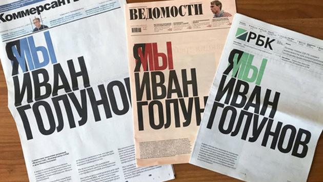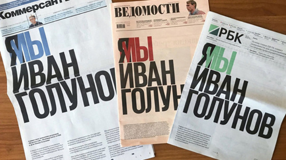 Корреспондент издания «Медуза» Иван Голунов был задержан 6 июня по подозрению в сбыте наркотиков, а через два дня отправлен под домашний арест. Журналист свою вину не признал и заявил, что наркотики ему подбросили, связав это со своей профессиональной деятельностью. Дело получило широкий общественный резонанс: за Голунова вступились журналисты, музыканты, деятели культуры и правозащитники. 10 июня три деловые газеты — «Ведомости», «Коммерсантъ» и РБК — впервые в своей истории вышли с одинаковой первой полосой в поддержку журналиста.