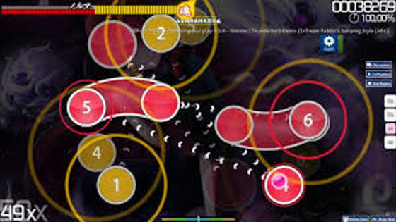 На видео геймер виртуозно играет в "osu!" - бесплатную музыкальную игру с открытым исходным кодом, разработанную и опубликованную Дином Гербертом (также известного под псевдонимом «peppy»). Игра вышла еще в 2007 году и была призвана развивать скорость реакции и чувство ритма. В "osu!" имеется программа "Featured Artists", которая представлена более 50 исполнителями. Их музыка была выбрана сообществом как отлично подходящая для игры, и имеет лицензию для использования в игре. Эта игра получила отличные отзывы и высокие оценки от киберспортивного сообщества в целом и от таких игровых сайтов, как Jeuxvideo.com и MMOGames.com, в частности. На данный момент существуют официальные адаптации "osu!" для iOS и Android.