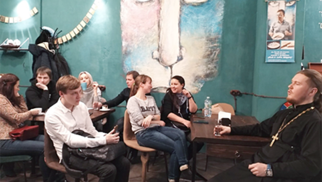 Российский священник провел беседу с молодежью в пивбаре