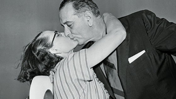 Жаклин Кеннеди стояла по левую руку от Линдона Джонсона, принимавшего присягу при вступлении в должность президента Соединенных Штатов. На ней был розовый костюм, запачканный кровью убитого мужа. Она наотрез отказалась снимать его. Первая леди объяснила это так: «Я хочу, чтобы все видели, что они сделали с Джоном». Инаугурация проходила на борту самолета, который должен был доставить тело убитого Кеннеди в Вашингтон.