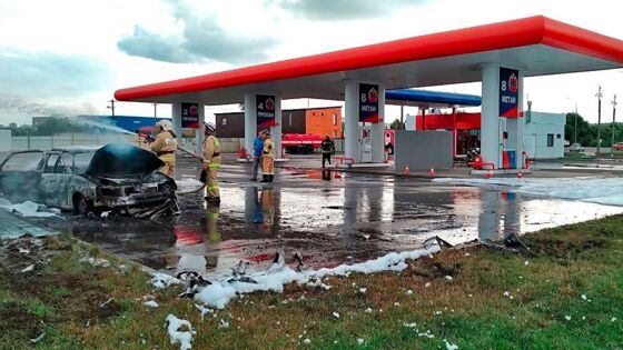 Водитель во время обгона разнес АЗС
