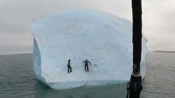 На видео попали два экстремала, захотевшие покорить айсберг. Исследователь и путешественник Майк Хорн и его товарищ Фредерик Роукс решили взобраться на вершину ледяной глыбы. Некоторое время всё шло удачно, но в какой-то момент айсберг начал переворачиваться и скинул альпинистов в воду, а затем накрыл их собой. К счастью, оба мужчины сумели выбраться и не пострадали.
