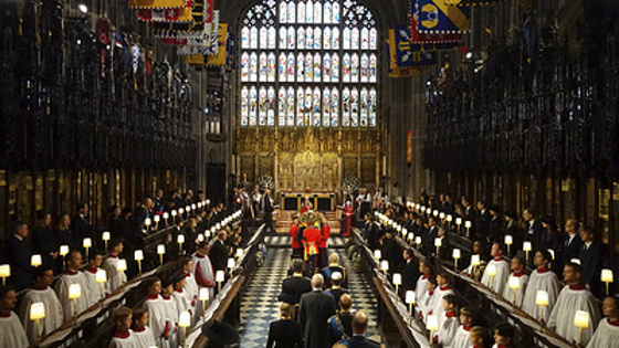 До начала панихиды колокол церкви делал по одному удару в минуту на протяжении 96 минут - по числу прожитых королевой лет. На гробе с телом Елизаветы лежали знаки верховной власти - держава, корона Британской империи и скипетр.