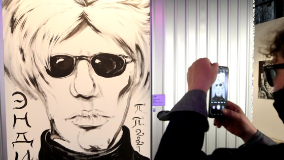 «Сама техника изображения – шелкография, это ручной принт. Накладывается несколько слоев краски. Есть возможность создавать одну и ту же работу несколько раз, но ручным способом, поэтому они все равно несколько отличаются», –пояснил куратор выставки Александр Губанов.В США сначала Уорхол вдохновлялся массовой культурой, а потом она стала подражать художнику. В Советском Союзе культмассовый сектор строился совсем по-другому. Если на Западе в 60-х поп-арт был как ирония над обществом потребления, то за железным занавесом соц-арт – как непризнанное искусство авангардистов.