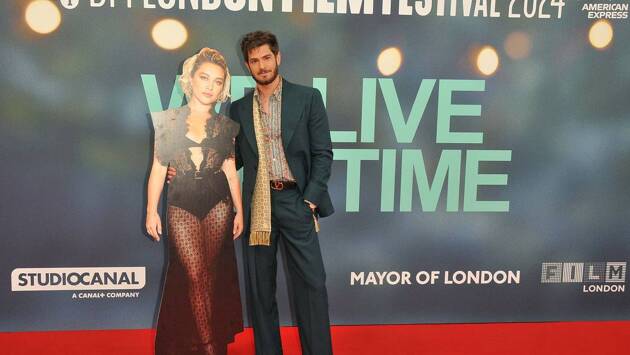 Флоренс не смогла прийти на премьеру своего нового фильма «Время жить» в Лондоне из-за занятости на съемках других проектов. Поэтому ее партнер по картине позировал на красной дорожке с картонной фигурой артистки в натуральную величину. Гарфилд с улыбкой позировал объективам и обнимал свою «спутницу».