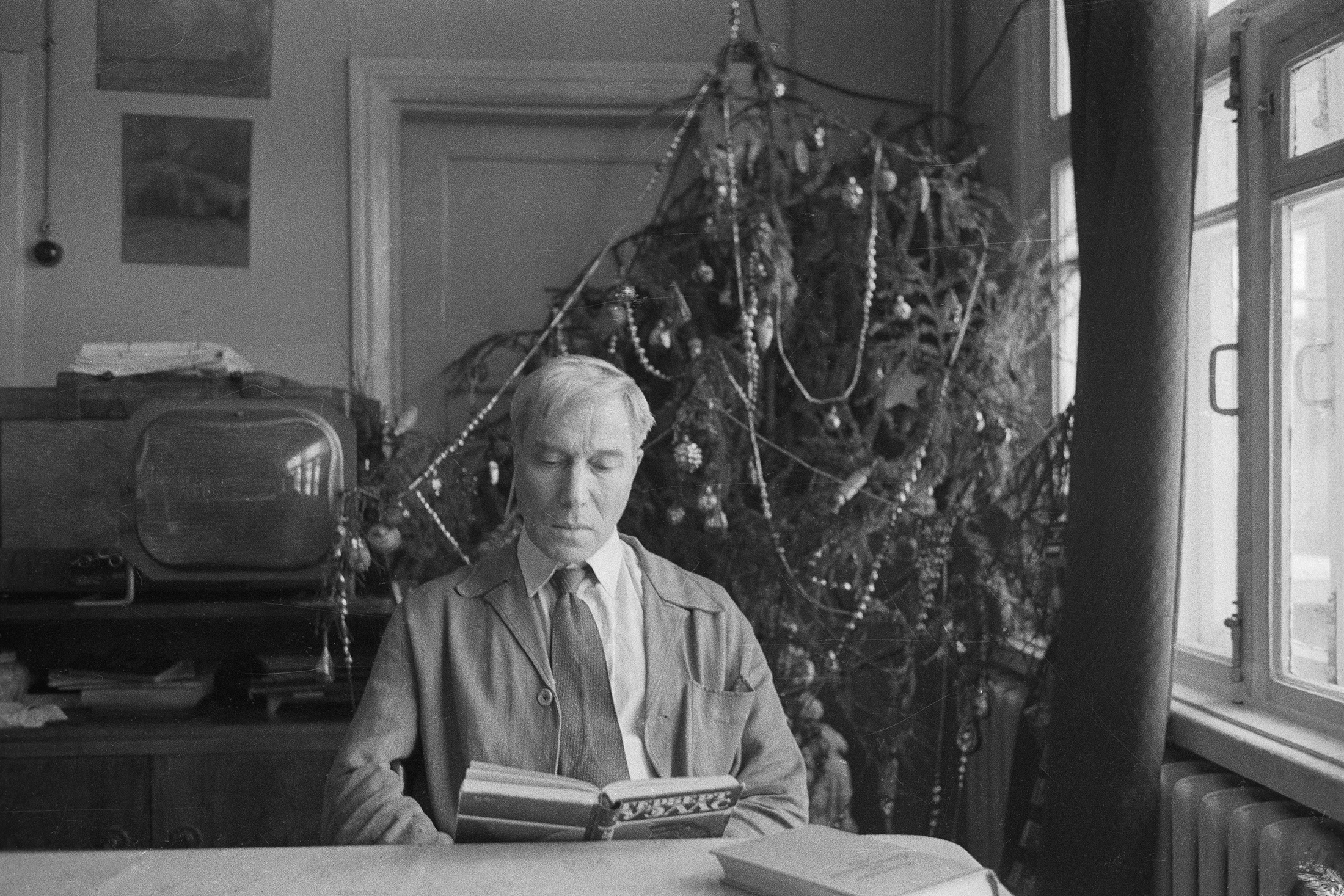 Здесь за спиной у Бориса Леонидовича новогодняя елка в переделкинском доме - и значит, стоит вспомнить стихотворение, которое поэт Николай Заболоцкий предлагал "повесить на стенку, обрамить в рамку и каждое утро снимать перед ним шляпу".