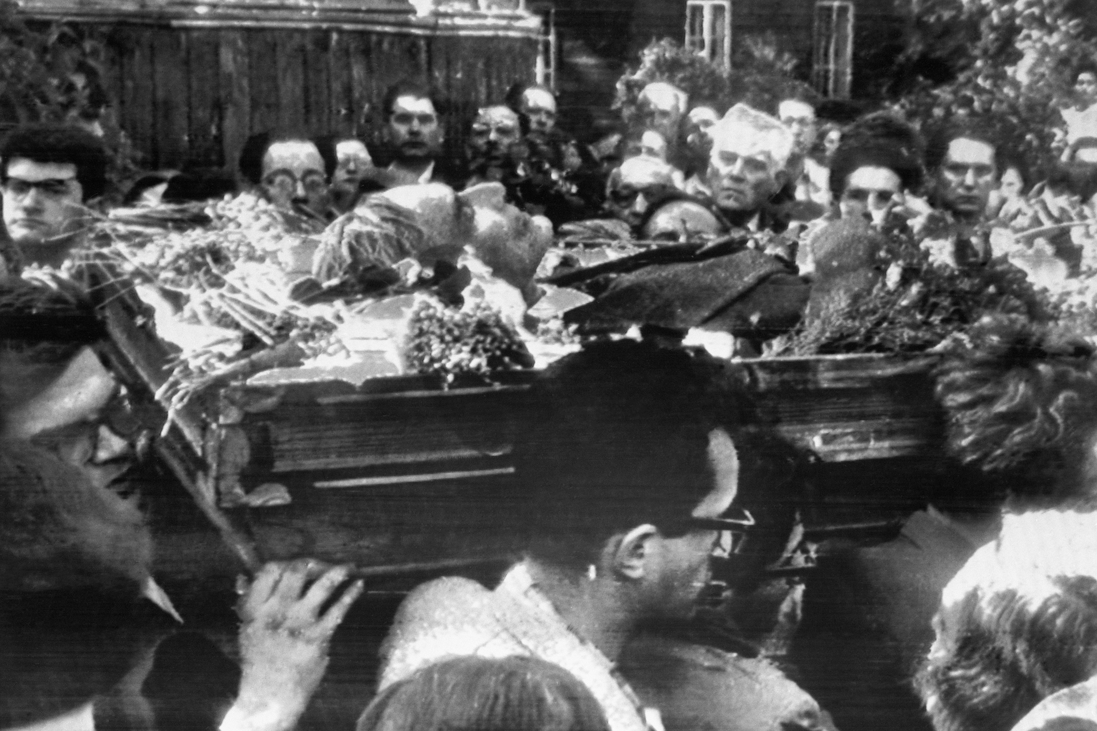 Пастернак умер в подмосковном Переделкине 30 мая 1960 года на 71-м году жизни. После двухлетней травли. Всего-то пару лет его называли: а) "паршивой овцой"; б) "лягушкой в болоте"; в) свиньей ("даже свинья не гадит там, где ест"). Всего-то и произнесли легендарное "Пастернака не читал, но осуждаю": а) слесарь-механик 2-го часового завода т. Сучатов; б) экскаваторщик Федор Васильцов; в) секретарь Союза писателей СССР Анатолий Софронов. Всего-то из Союза писателей исключили. Инфаркты у Пастернака уже бывали, новые стрессы обернулись раком легкого. Хоронили 2 июня, как члена Литфонда, на Переделкинском кладбище.