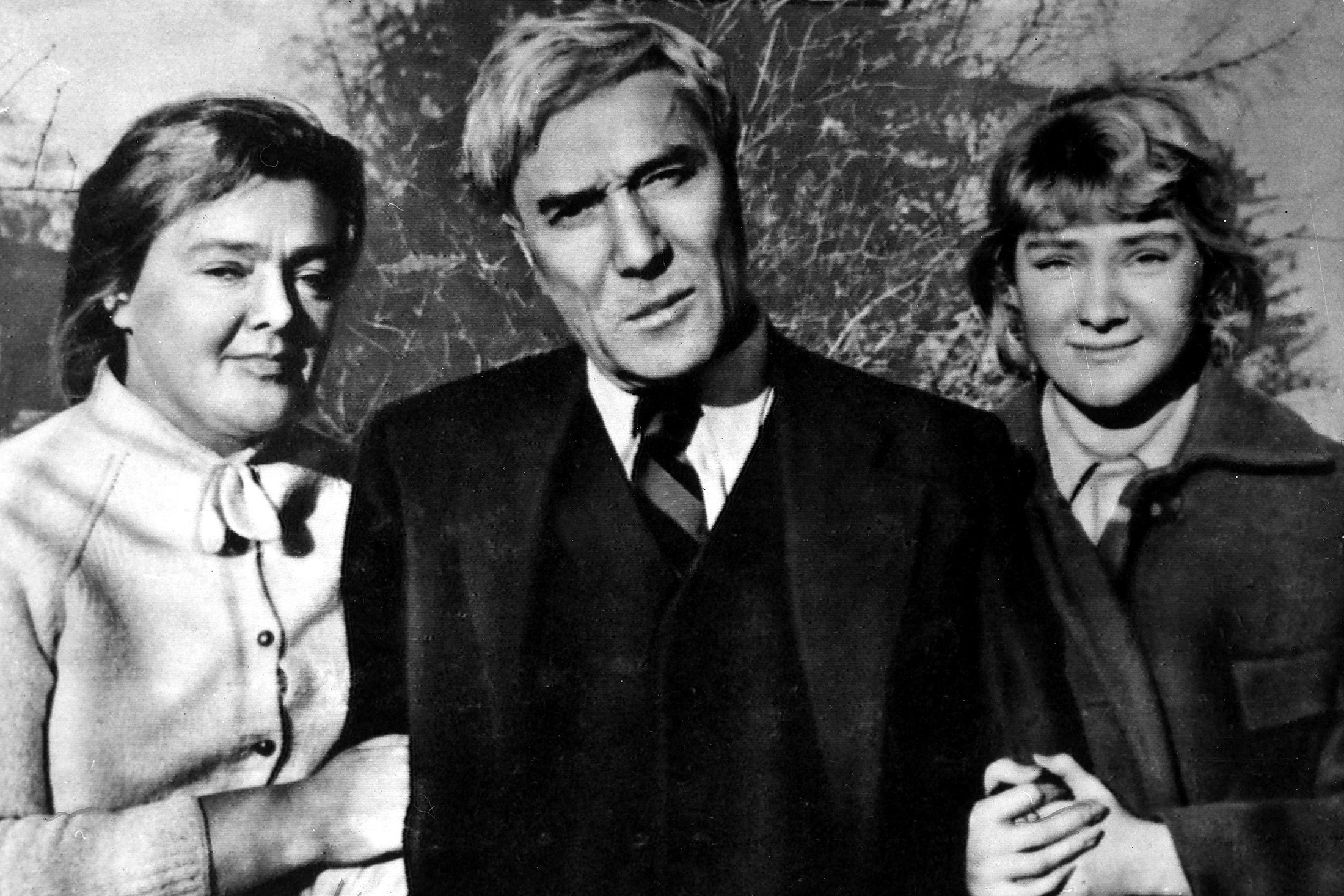 Но здесь - фото Пастернака, стиснутого между его "музой" Ольгой Ивинской и ее дочерью Ириной (у нее другой отец). Ивинской посвящались многие стихотворения - и какие! "Ты так же сбрасываешь платье, / Как роща сбрасывает листья, / Когда ты падаешь в объятье / В халате с шелковою кистью".