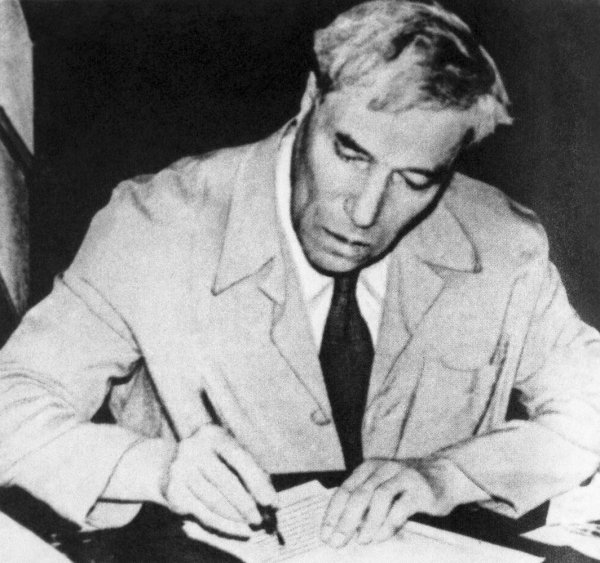 Борис Пастернак за письменным столом в Переделкино. Интересное письмо он написал 16 января 1959 года завотделом культуры ЦК КПСС Дмитрию Поликарпову (тому самому, которому некогда вождь сказал свою знаменитую фразу: "В настоящий момент у меня нет для тебя других писателей: хочешь работать, - работай с этими").