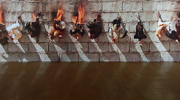 Художник поджег живых куриц и вызвал скандал