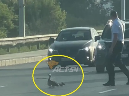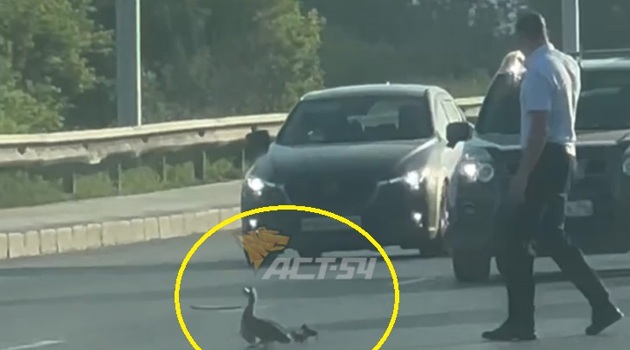 Утку с малышами перевел через Димитровский мост автомобилист в Новосибирске