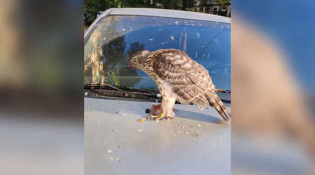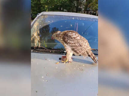 В Петербурге ястреб-тетеревятник разодрал голубя на капоте автомобиля