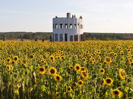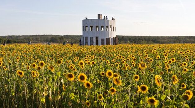 Центральным объектом ландшафтного фестиваля "Архстояние" под Калугой стала бетонная вилла