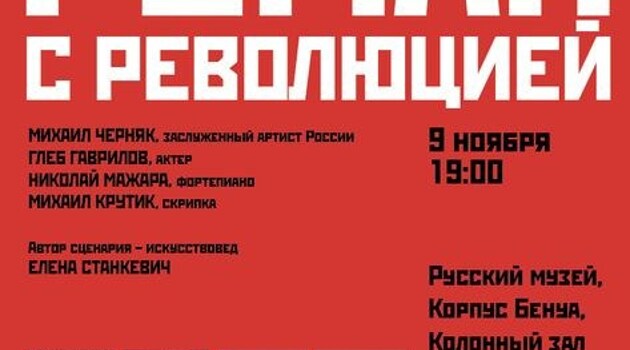 9 ноября в 19.00 в Колонном зале корпуса Бенуа Русского музея состоится музыкально-литературный вечер "Роман с революцией"