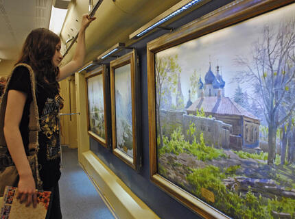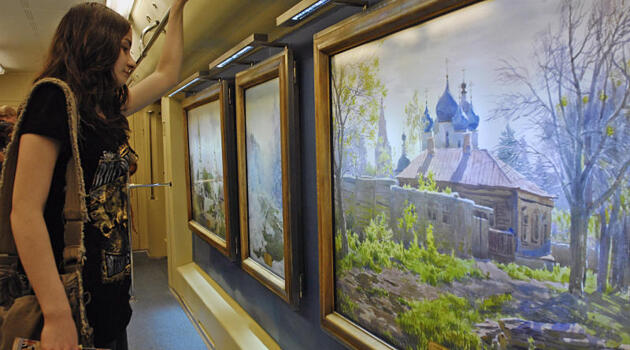 Поезд "Акварель" с новой экспозицией запустили на синей ветке метро