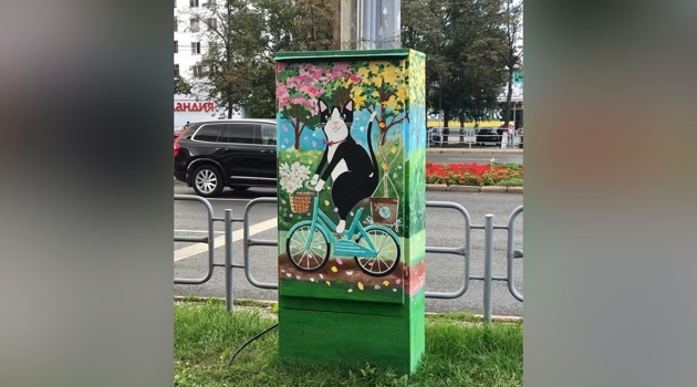 Челябинские художники посадили кота на велосипед возле педуниверситета