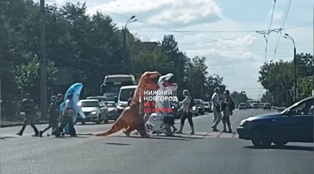 Динозавры на «зебре»: нижегородцы заметили необычных пешеходов на дороге
