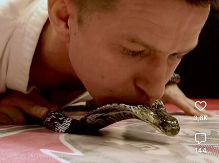 Сексуальный актер из Костромы начал год змеи с поцелуя с коброй: видео