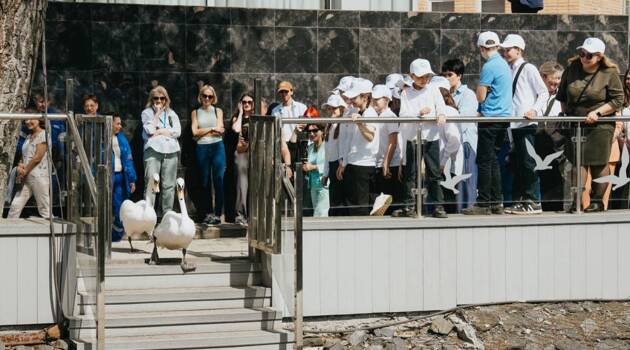 Жители Капотни встретили лебедей, вернувшихся в пруд после зимовки