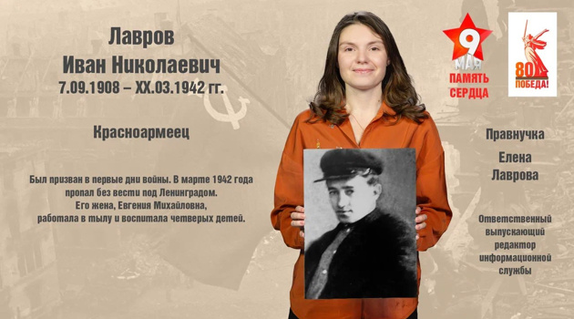 Ответственный выпускающий редактор информационной службы «МИР 24» Елена Лаврова: «Прабабушка всю жизнь ждала прадеда, который пропал без вести, и ходила встречать поезда»