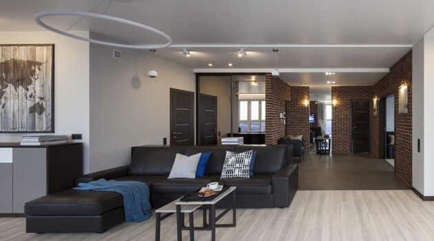Пентхаус с видом на город: интерьер квартиры в стиле лофт