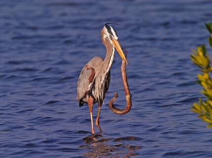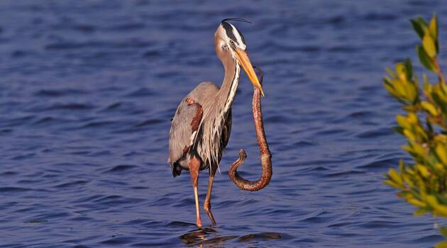 Схватка цапли и змеи попала в объектив фотографа