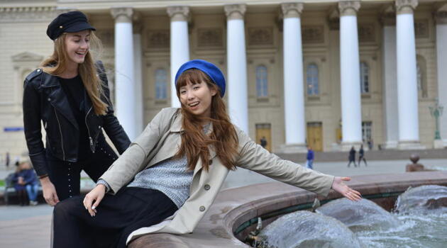 Подруги-москвички Анастасия Рыбалко и Аминаа Цэрэндагва наслаждаются последними теплыми днями уходящего месяца