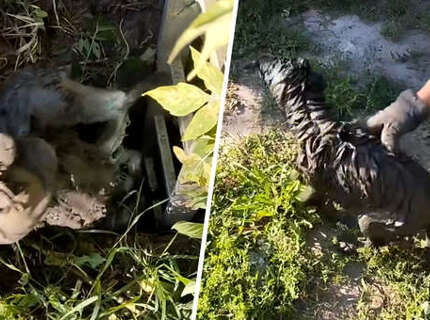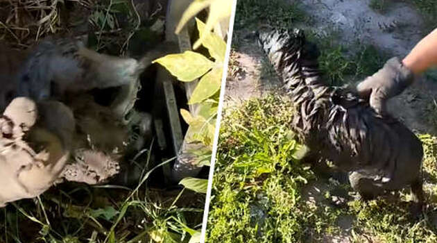 В Тюмени рабочие вытащили из колодца с водой собаку