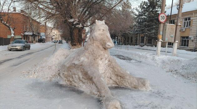 В Новочеркасске пожарный слепил снеговика в виде огромной лошади