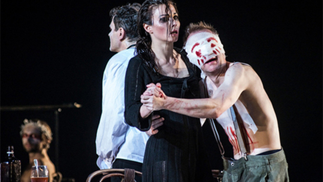 В Московском драматическом театре имени Пушкина 11 ноября состоялась премьера спектакля «Барабаны в ночи» режиссера Юрия Бутусова по одноименной пьесе немецкого драматурга Бертольта Брехта. Цирк и кабаре — возможно, главные истоки последних спектаклей Бутусова, смешивающих фееричное обрамление и прямое, порой публицистическое высказывание. В последние годы Бутусов, несмотря на свой постановочный размах и богатый набор сценических эффектов, одним из любимых своих авторов избрал Брехта — с его пьесами, писавшимися для театра прямого воздействия, театра резкого, выразительного, но при этом аскетического и чуравшегося роскоши. В Петербурге идет его спектакль «Кабаре. Брехт», а в Театре имени Пушкина уже почти три года показывают «Доброго человека из Сезуана». На этот раз Бутусов взял ранний текст Брехта, комедию (по определению самого драматурга) «Барабаны в ночи», написанную в 1919 году (вторая редакция была сделана в 1954-м). Спектакль, длящийся три с половиной часа, и в самом деле тяготеет к жанру комедии — порой горькие мысли Брехта, вложенные в уста главного героя, никому не нужного солдата, вернувшегося с войны, из плена, тонут в массе изобретательных театральных трюков, растворяются в чрезвычайно насыщенной, плотной музыкально-хореографической ткани спектакля. И только когда спектакль сбавляет темп, когда общий, маняще живописный, план сменяется на крупный и незащищенный актер оказывается один на один с залом, текст о неважном устройстве этой «маленькой звезды» звучит отчетливо и честно, как личный опыт проживания исторических катастроф. Сюжет небольшой пьесы Брехта несложен: Андреас Краглер ушел на войну и не вернулся; спустя четыре года его невеста Анна собирается замуж за фабриканта Мурка, партнера ее отца. В момент помолвки возвращается Краглер, но Анна уже беременна. Солдат отправляется в кабаки, к проституткам, в кварталы, где бушуют революционно настроенные пролетарии. Но Анна пускается следом, и вернувшееся личное счастье гасит политический пафос обиженного Андреаса, заявляющего новым соратникам и публике, что героической смерти за идею он предпочитает постель и размножение. Спектакль Бутусова решен в стилистике кабаре: сцена оформлена рядом крупных, то светящихся ровным белым светом, то мигающих, лампочек. Есть персонаж, девушка в мужском костюме, с прилизанными белыми волосами, с комичной картавостью — в пьесе это официант, но у Бутусова она конферансье (Анастасия Лебедева), комментирующая происходящее, объявляющая перед закрывающимся иногда занавесом антракт и короткие перерывы прямо по ходу действия, с музыкой или без. Есть обилие пластических номеров — иногда смысловых (танец-месть Анны-Александры Урсуляк, увлекающей в агрессивное кружение своего безвольного бывшего жениха, тихонько сидящего на стуле), иногда просто ради нарастания энергии. В первом акте драматическое действие то и дело прерывается каким-то то ли техно, то ли хип-хопом, под который в рваном рисунке двигаются актеры. Все неторопливое начало второго акта заполнено бессловесными, красивыми и убаюкивающими номерами, призванными, видимо, создавать особую атмосферу. Как часто бывает в спектаклях Бутусова, актеры примеривают на своих персонажей различные маски, отмеченные каким-нибудь броским внешним знаком: белый грим, всклокоченные 